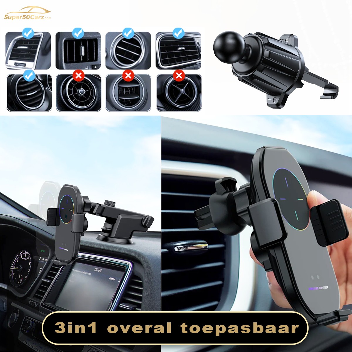 Ben je op zoek naar een handige en veelzijdige telefoonhouder voor in de auto? De Super50Carz draadloze oplader auto biedt alles wat je nodig hebt! Met 15 Watt draadloos snel laden, infrarood sensor detectie en verschillende bevestigingsopties, is dit de perfecte oplossing voor mensen die veel onderweg zijn. Met CE-certificering en veilige QI-technologie ben je verzekerd van een veilige en betrouwbare telefoonhouder. Ontdek vandaag nog de voordelen van de Super50Carz draadloze autohouder!