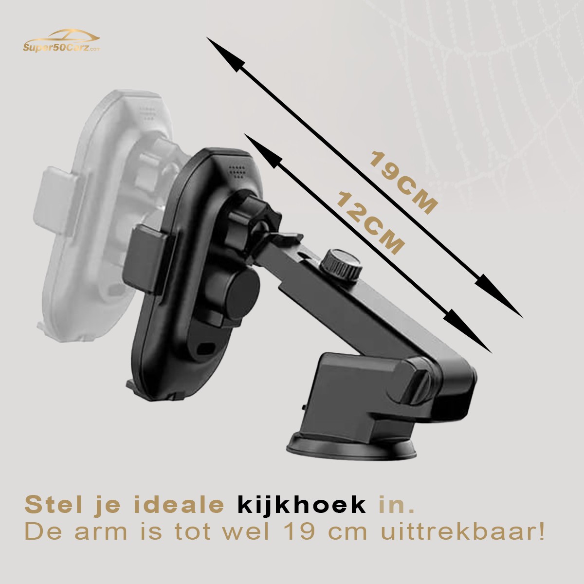 - Super handig, je telefoon wordt automatisch vastgeklemd en begint met opladen.